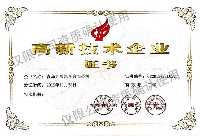 青岛九瑞汽车有限公司一中国应急抢险救援指挥车辆专业制造商,位于山东省青岛市胶州大沽河工业园区,国家汽车生产目录企业,荣获各类专利80余项,旗下拥有专用车辆公告50余款、产品300余款,定制方案千余种。拥有一支集研发、设计、生产、服务于一体的专业技术团队,自主研发了应急抢险救援车辆柔性生产线,以科技创新推动应急抢险救援车辆及装备行业发展。