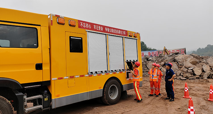 九瑞多功能隧道抢险车,参加地方应急演练:听党指挥 勇挑重担 争做公路应急保障排头兵!该车采用汕德卡双排座消防专用底盘,搭载:指挥办公系统/ 车辆照明系统/ 液压尾板 (选装)/ 车载抽拉式淋浴系统/ 通信系统/ 应急救援装备/ 液压抢险装备/ 生命保障系统/ 抢险人员自助救护系统/ 供配电系统/ 警灯警示系统,全方位保障交通应急重任。