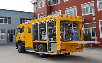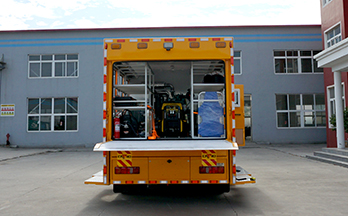 电网电路抢修车、大型多功能应急抢险发电车在汕德卡二类底盘基础上改装而成,集先进的大功率广播指挥系统、现代无线通信技术、计算机技术、图像采集及传输技术、强光照明技术等于一体,实现指挥车与现场工作人员的通信联络、现场指挥调度等功能,应用国家电网、电力应急抢险抢修等部门,针对大型现场、群众疏散、抢险救援、综合移动的指挥中心,是现代通信技术及其它高科技技术的综合运用。