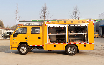 多功能抢险、抢修车,在江铃顺达二类底盘基础上进行改装,加装箱体总成、型材器具柜、液压支撑系统、供配电气系统、照明系统、警灯警示系统、抢险专用设备、附属配套设备(登舱梯、顶部防护装置、工作台、工器具、手动液压叉车)和安全系统等系统。