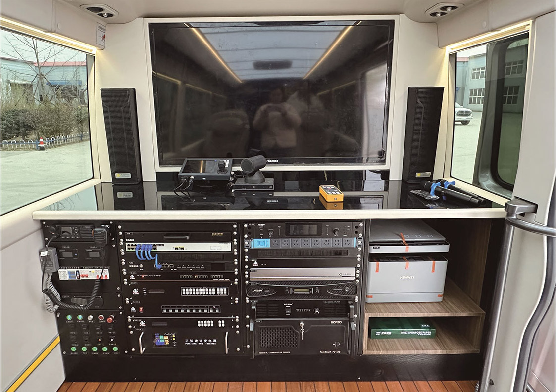 九瑞多功能应急指挥车具备通信传输、信息采集、信息网络、指挥应用、综合保障等系统功能。可实现应急指挥现场和后端指挥中心音视频互联互通,链接旗下便携指挥箱、机器人、无人机单兵通信设备,形成人、车、机、场景智联互动,以满足全场景指挥需要。构建以车辆为中心的智能互联通信集群,并可作为综合协调多功能指挥中心。
