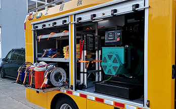 配备发电机组,空压机,电焊机以及应急抢险抢修时必备的光源,气源,电源设备等专用装置.主要用于抢险救灾中的应急电力支援,排除积水和提供专用救险工具。