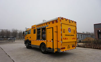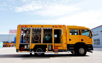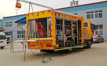 汕德卡特种车专用二类底盘/ 指挥办公系统/ 车载抽拉式淋浴系统/ 车辆照明系统/ 液压尾板(选装)/ 车载专用潜水、救险设备/ 通信系统/ 管供式潜水设备/ 应急救援装备/ 自携式潜水设备/ 供配电系统/ 警灯警示系统