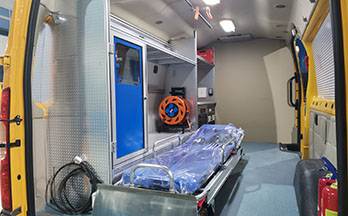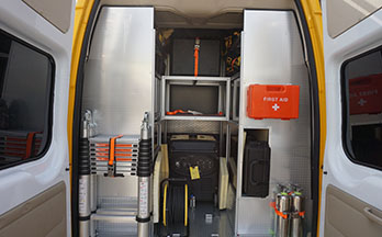 九瑞牌矿山抢险应急救援气防车,采用福特全顺厢客底盘;集急救、救险、抢修、通讯、设备等五大功能于一体,可装备警示灯具、夜间照明、监控摄像存储、数据传输、音像系统、应急抢险救援装备、外接电源系统、担架急救和办公指挥语音调度等现场作业于一体的综合应急抢险救援车辆;