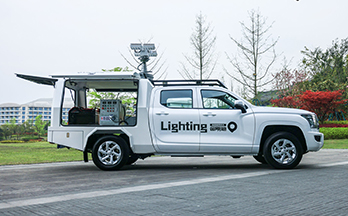 矿山抢险救援应急照明车,九瑞牌应急抢险照明车,用于紧急情况下的应急照明,可以用发电机提供电源或市电提供电源;配备8米升降杆,电动支撑保障升高时稳定性;配备4*600W led灯头,提供全方位无死角照明;