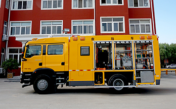 1、该车辆采用重汽特种作业车双排专用底盘,在能够装备抢险设备的同时还能乘坐5-6人的抢险小组;