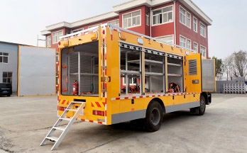 车内配置多种抢险工具,在提供临时供暖的同时,展开抢险救援