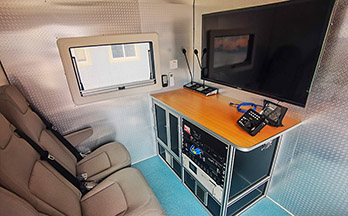 4)大客车裙围式结构设计,翻下后可做踏步,其上可承载小型设备。