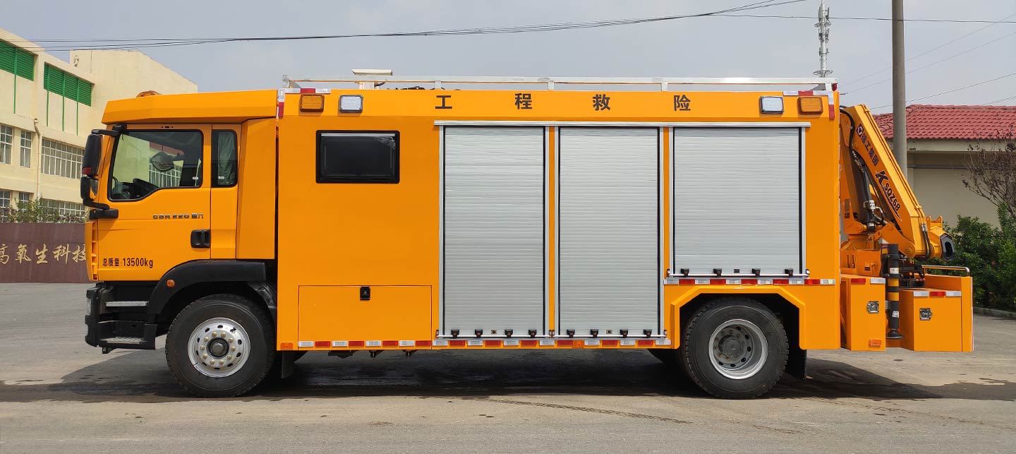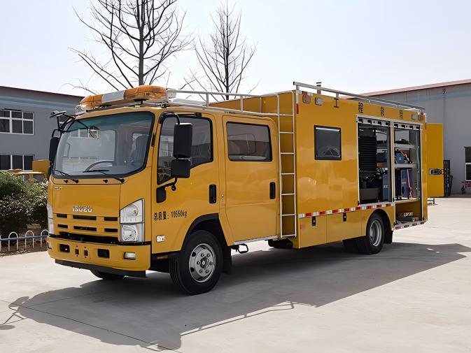 车辆厢体内部构造可根据客户行业需求定制,配备3.2吨随车曲臂吊,各类抢险救援装备,车载照明,发电机组,液压动力站,消防破拆等专用设备,极大的提高了抢险抢修的灵活性、迅速性。