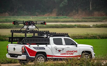 该植保无人机车搭载农业无人机、农业无人车、农机自驾仪、农业物联网和智慧农业管理系统。旨在深度服务智慧农业领域,解决新农人们上山下乡路上的痛点,金刚炮新农人版可根据行业需求、用户需求进行改装,满足智慧农田,智慧农场,智能农业设备装载运输等工作,提升农业生产效率,赋予新时代的新农人。