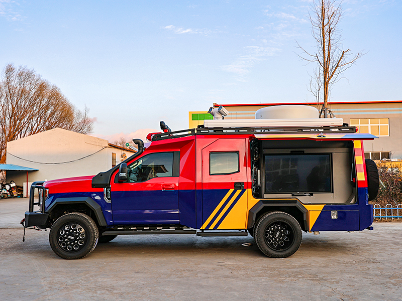 这款越野通信指挥车采用福特F550底盘打造而成,动力方面:搭载7.3L汽油涡轮增压发动机,匹配 10档自动变速箱,功率257KW,扭矩635Nm,动力强劲。在越野性能方面,配有四轮驱动、越野轮胎、限滑差速器及足够的离地间隙等。