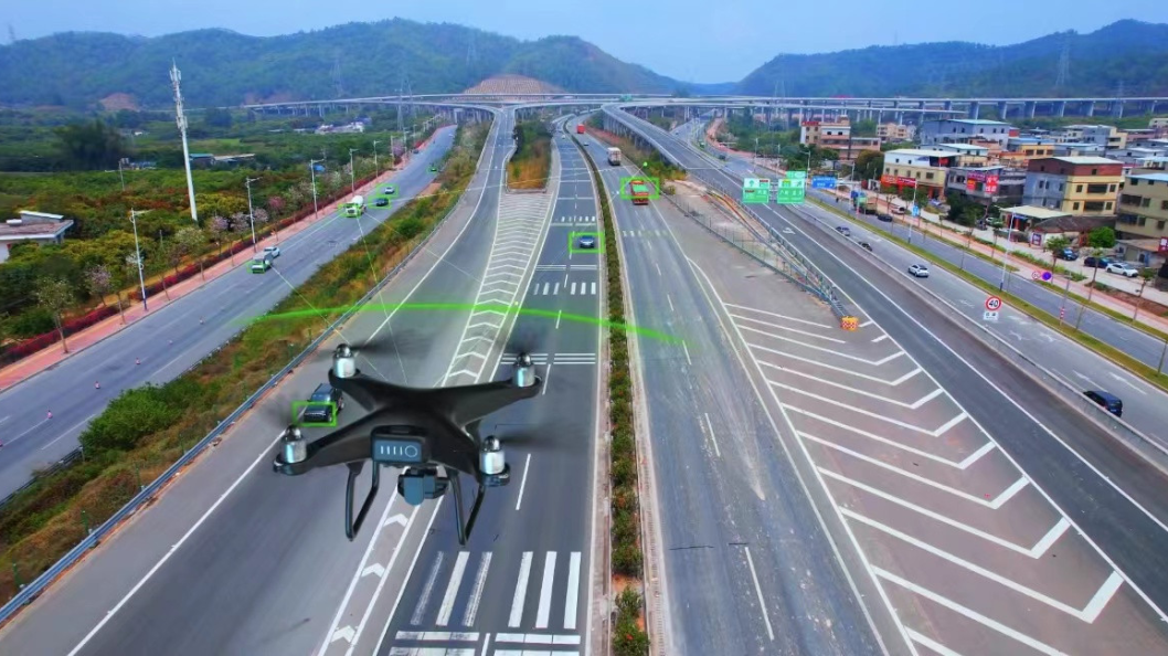 * 无人机还可以搭载5G AI相机,自动识别人脸和车牌,抓拍占用应急车道等违法行为。