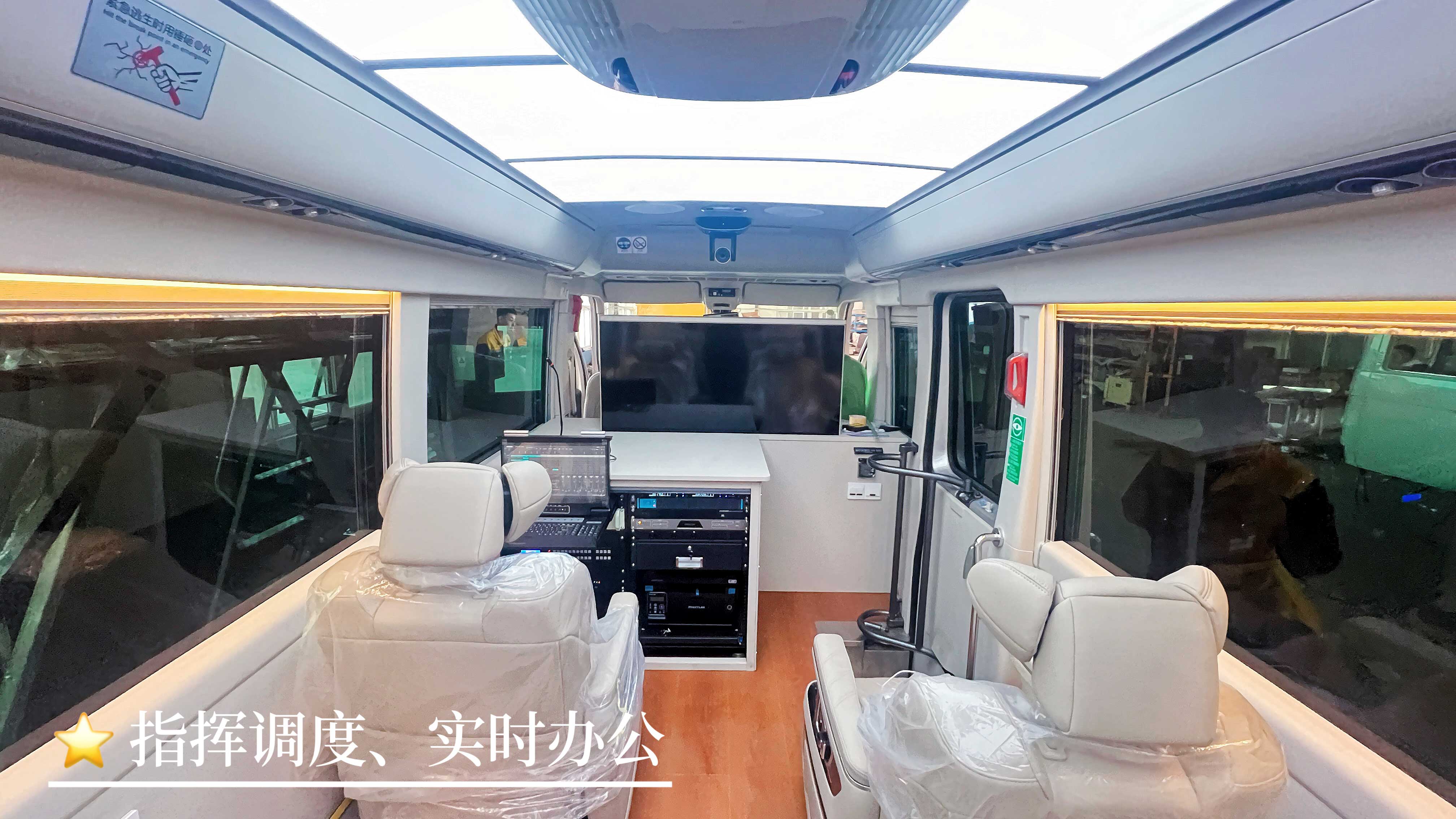 同时,该车具备出色的平战结合特性,在非灾害时期可作为高端商务办公移动平台使用。车内宽敞空间经过模块化设计,可快速切换为商务办公模式,配备的高清视频会议系统在日常商务洽谈中同样能发挥重要作用,支持与异地合作伙伴进行流畅的远程会议,清晰传递项目方案与合作细节;卫星通信系统和公网通信系统保障了在商务出行中随时随地接入网络,处理邮件、查阅资料、进行在线协作毫无阻碍;车内预留的办公区域可放置笔记本电脑、文件资料等,搭配舒适的座椅和适宜的车内温度控制系统,为商务人士营造出高效、舒适的移动办公环境。无论是灾害救援时的紧急指挥,还是日常的商务差旅办公,该车都能完美适配,实现一车多用,大幅提升设备利用率。