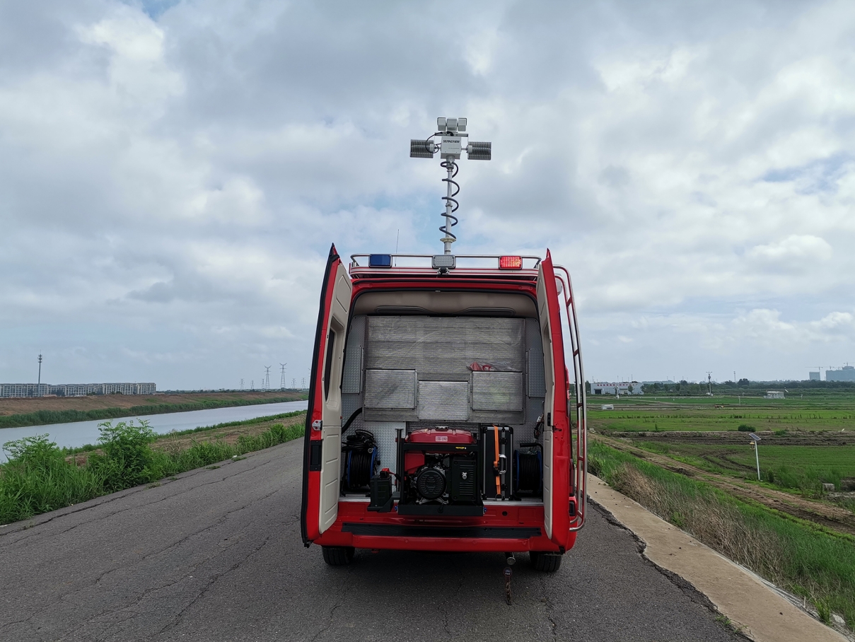 其次,特种应急指挥车还配备了升降摄像照明灯,可以在夜间或复杂环境下提供强大的照明能力,同时还可以通过高清摄像头实现360度全方位监控,为指挥人员提供更多的信息支持,提升指挥效率。
