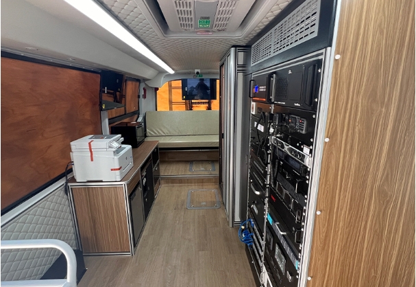另外还配备了供配电系统、升降照明系统、激光打印一体机、车载饮水机、微波炉等生活设备,可以满足长时间野外作业。