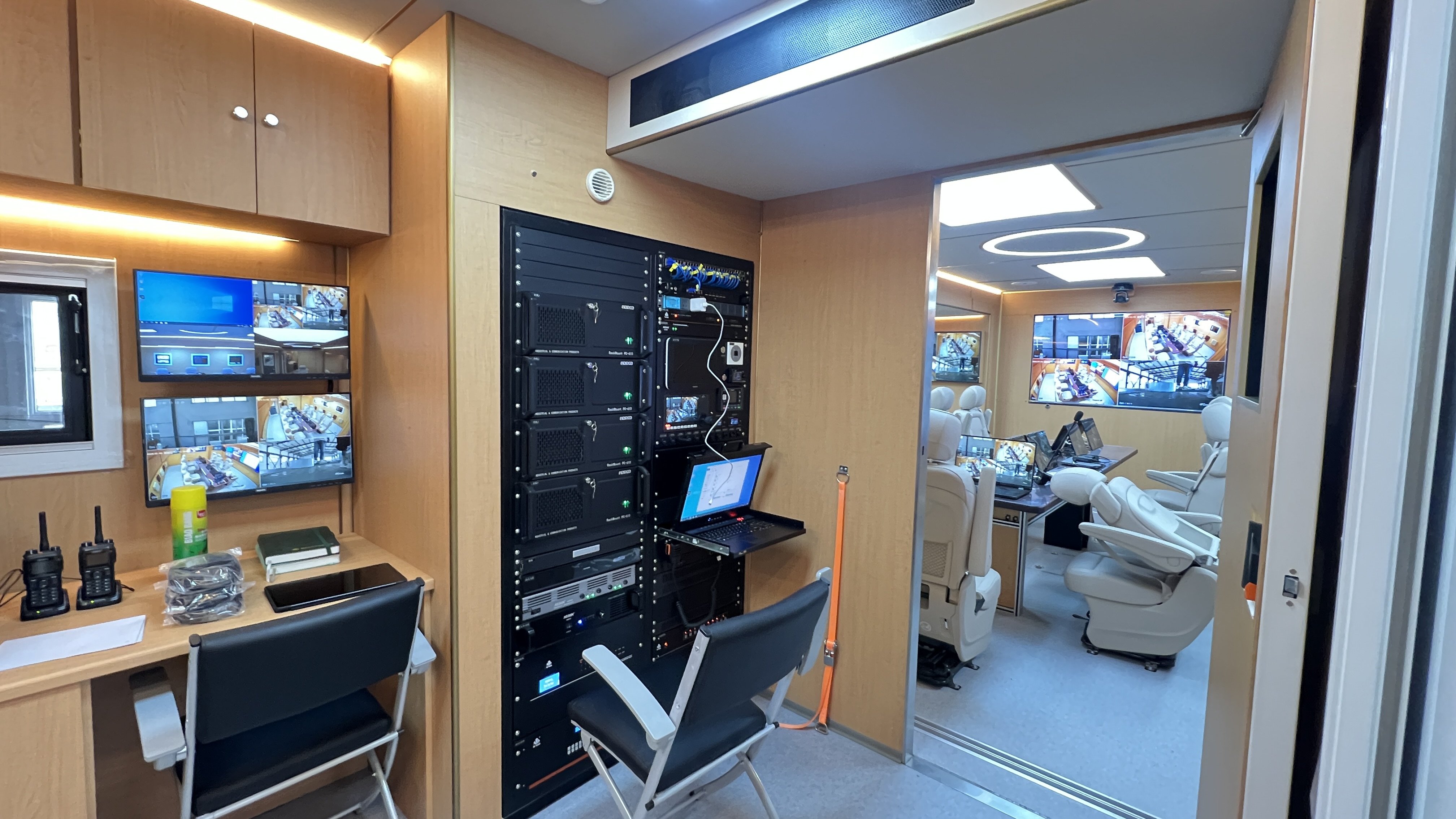 视频采集、传输、切换、存储、录放功能:通信指挥车具备多路图像采集设备,包括固定、移动、手持方式的图像采集设备,可实时采集、传输现场音视频信息,进行各路图像间的切换,通过屏幕显示、音响系统和录像设备进行监看、录音、录像和回放,并实时传回后方指挥中心,为指挥中心领导提供决策依据