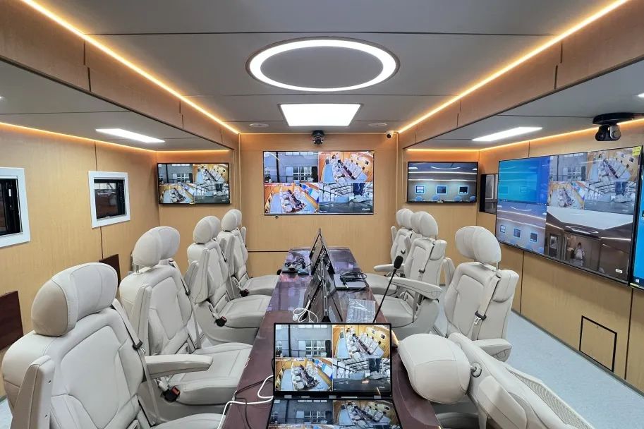移动办公功能:在应急处置的复杂矩阵中,大型拓展方舱指挥车能够即时搭建办公空间,犹如一套灵活精巧的 “随行办公厅”,无缝嵌入各类艰难工况,保障指挥调度与行政事务高效运转
