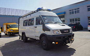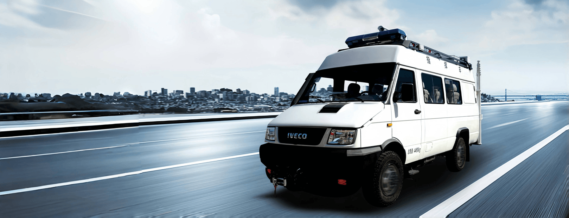 该车是在依维柯2056军用越野底盘的基础上进行改装的通信指挥车,动力强劲、越野能力优秀,高涉水能力,具备在灾害、事故、应急现场指挥调度的先锋作战能力。具备多重通信、指挥、调度功能,将现场信息实时传回提供决策依据,实现现场的联动指挥调度。