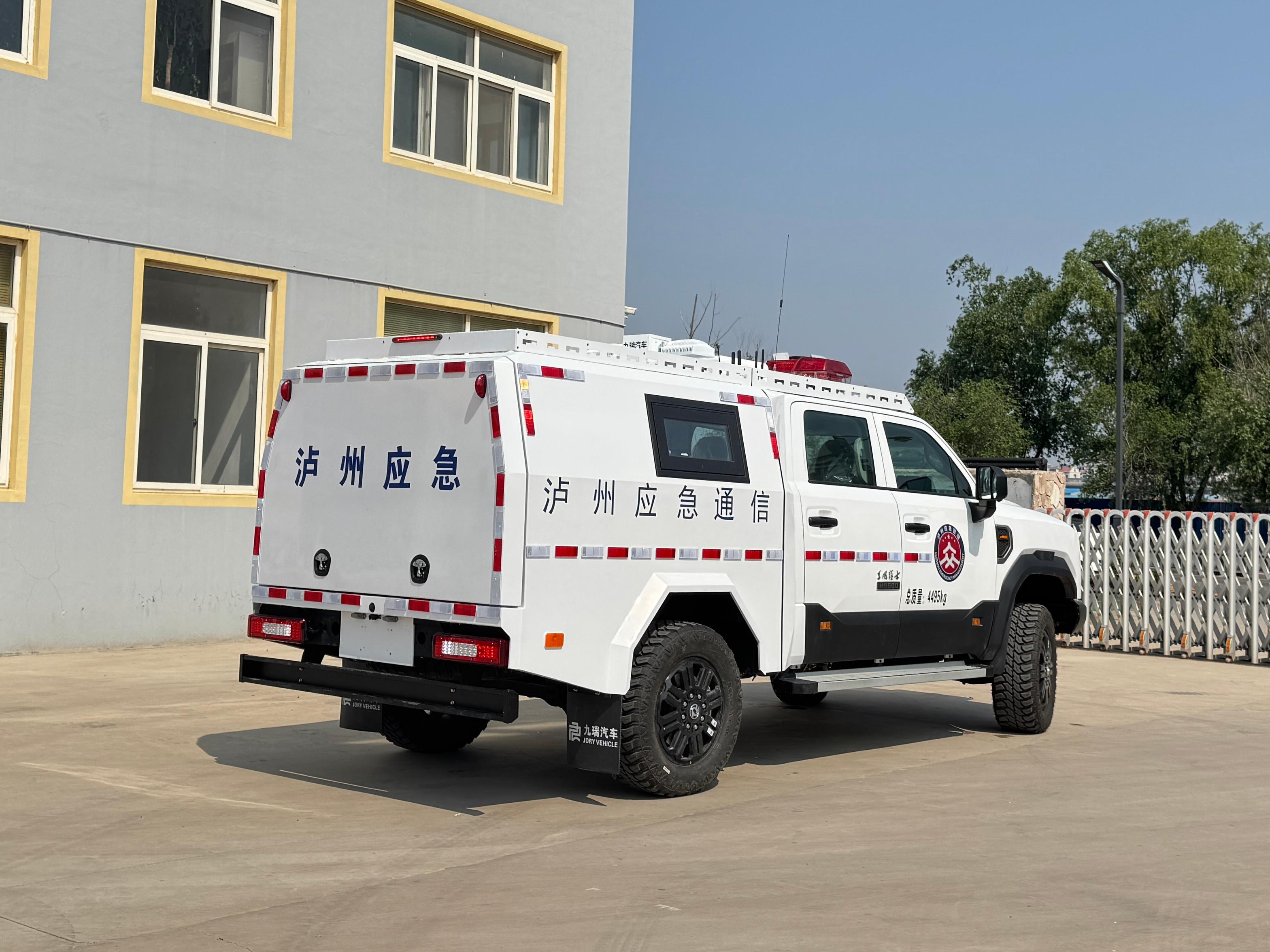 保留猛士MS600硬派越野外观风格,双排座设计可容纳较多人员,同时为通信设备预留安装空间。车辆顶部通常安装各种通信天线、卫星接收装置、摄像头等设备,以实现全方位通信和监控。
